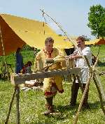 These pictures were taken at a living history exhibit put on by the Ontario "Anglo Saxon Group" made up mostly of our Regia members. Please exuse any inauthenitc items that appear in these pictures, especially in the background. Note that the members of the public for this display were SCA members, so some of the pictures include spectators that are either in modern clothes, or garments not accurate to regia's time period.